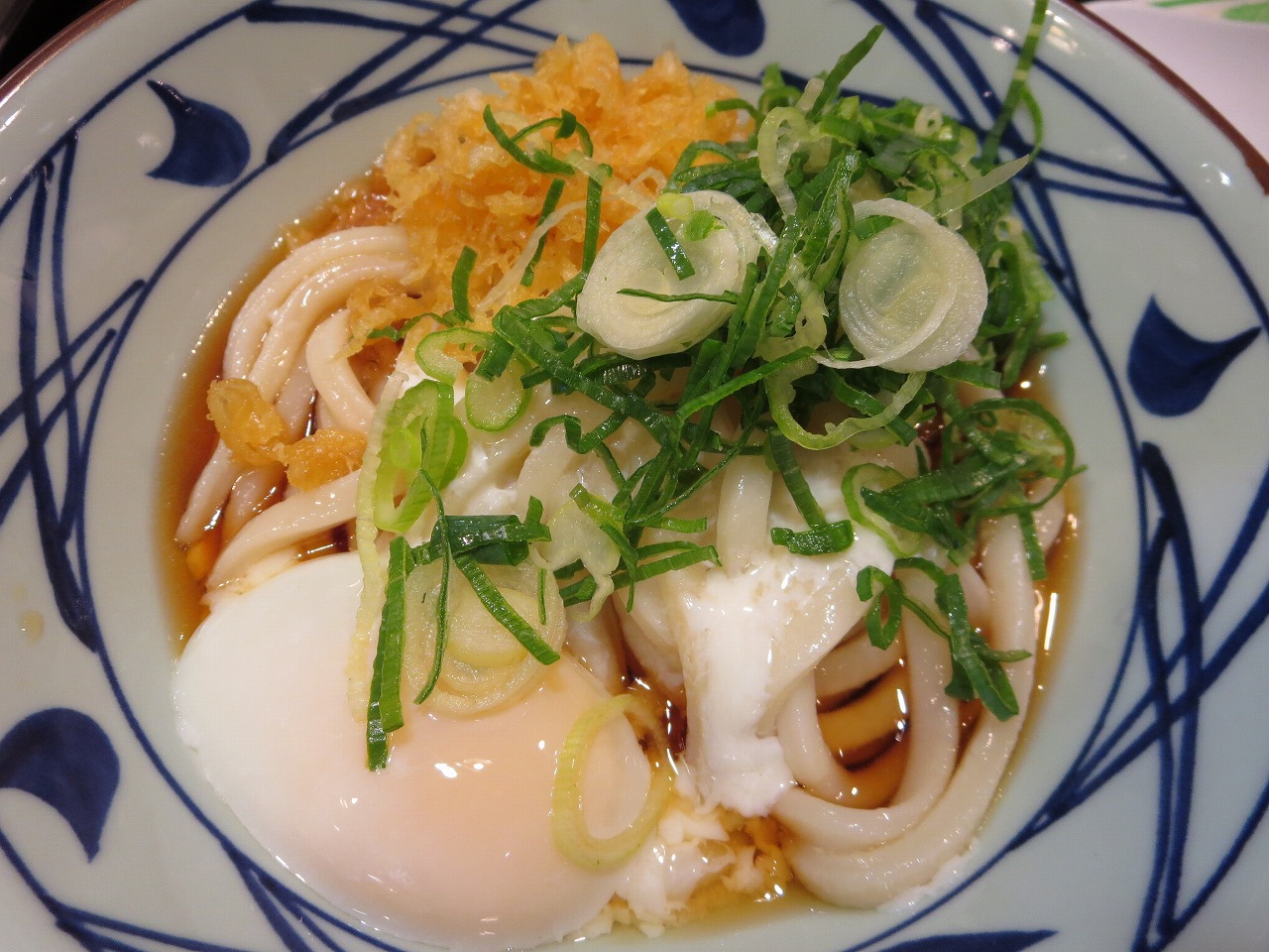 ぶっかけ美味しいです。ねぎと天かすは、レジの横に置いてあって、自由に盛り付けることができます。