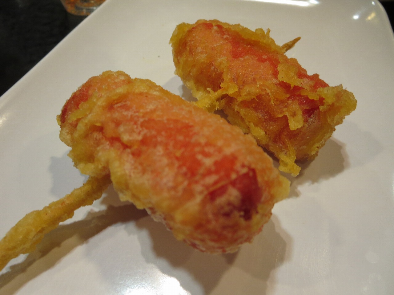 ハワイアンソーセージ天ぷらも美味しい!魚肉ソーセージを思わせるようなさっぱり具合ですが、ポークソーセージです。意外とおうどんにベストマッチ。