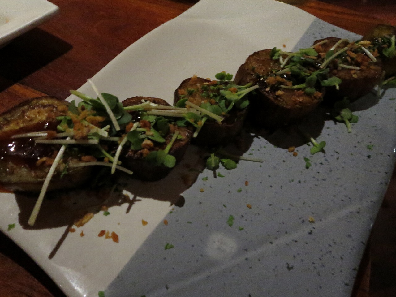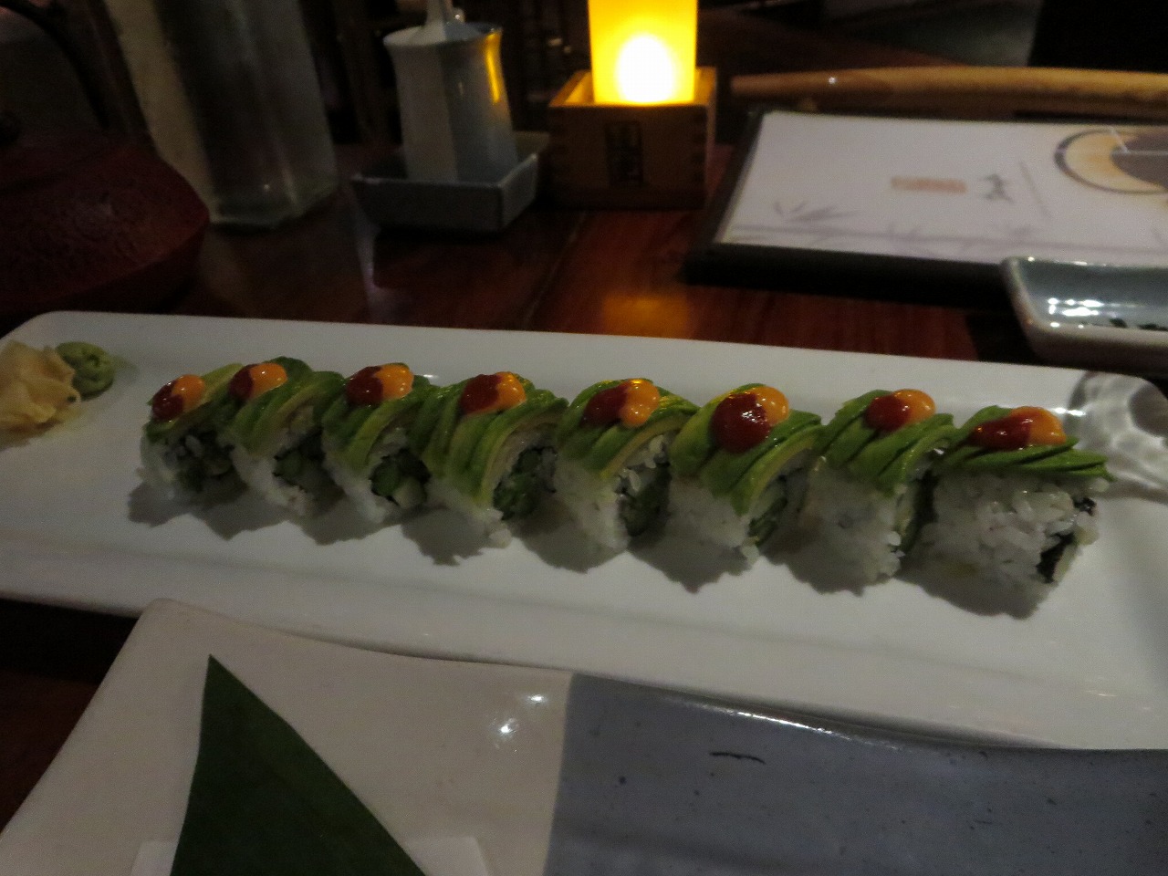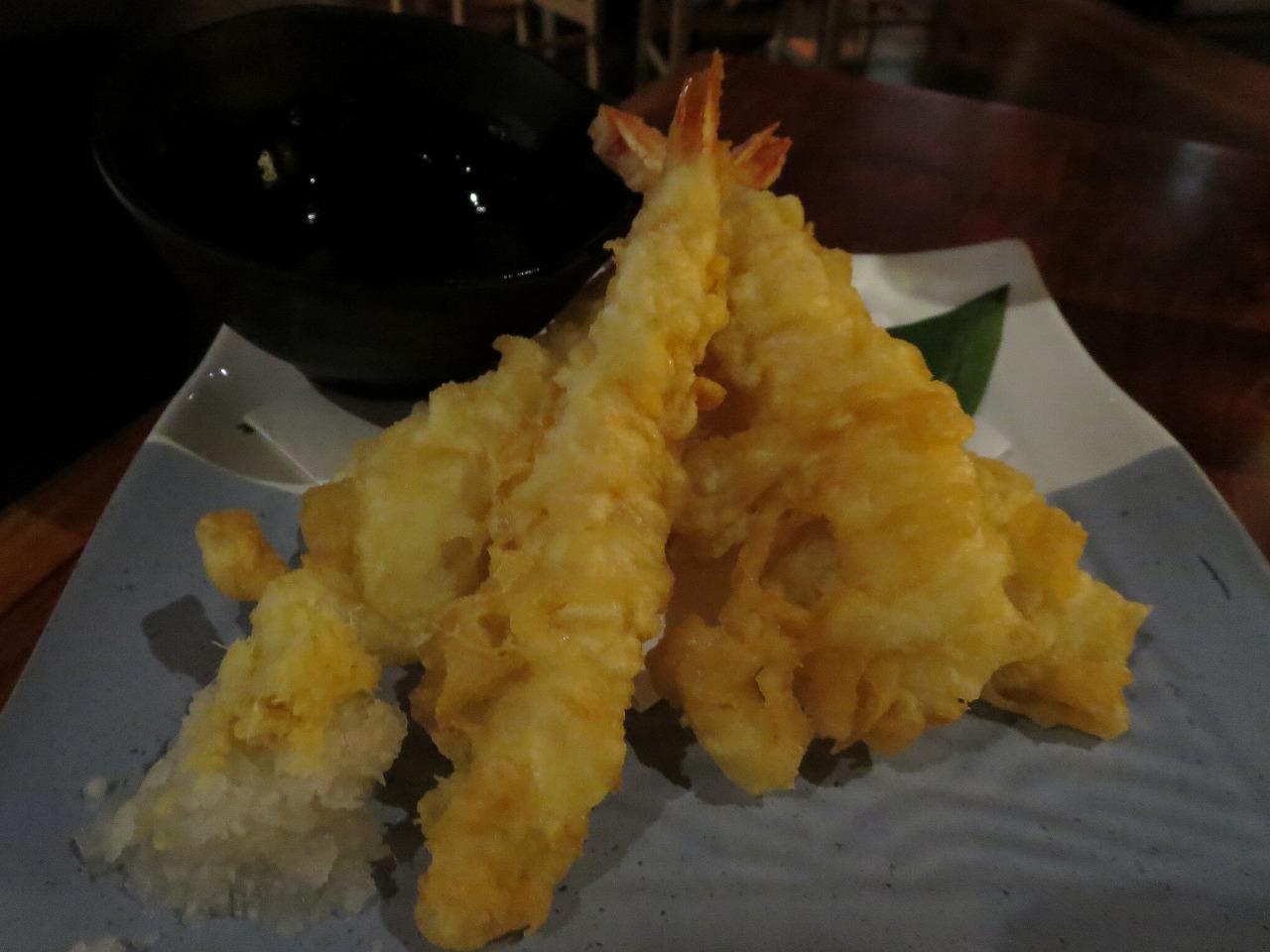 オーダーは、豆腐のサラダ、茄子の田楽、えびの天ぷら、ロール寿司。日本で食べるのと一緒ではないものの、すべて美味しくいただけました!