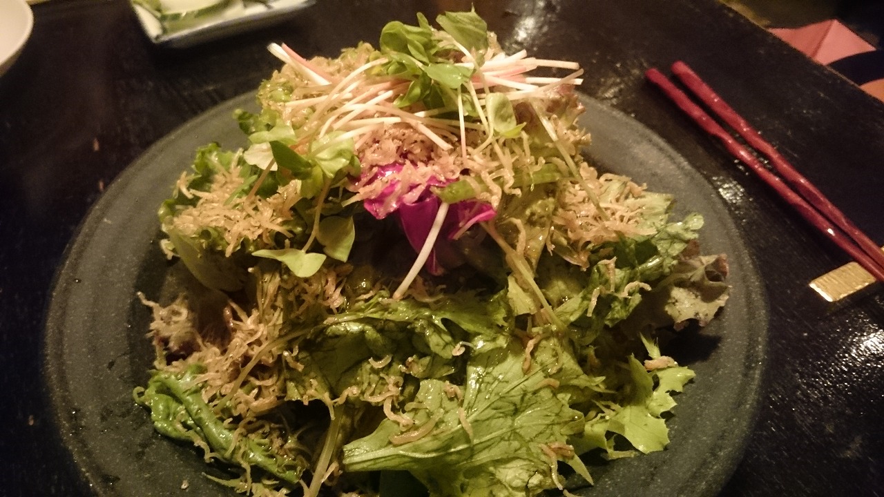 オーダーはアマトリチャーナ@1,300円。このお値段に、たっぷりのサラダとドリンクがついています。サラダのお野菜も新鮮です。