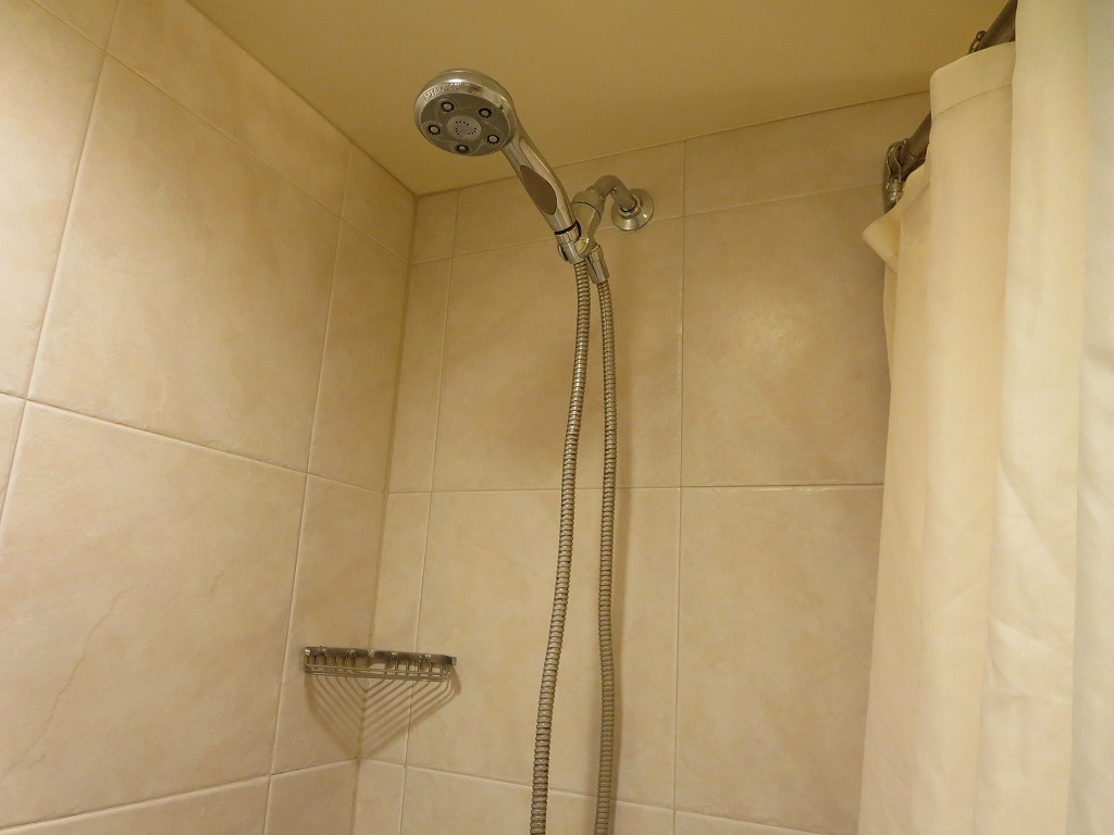 バスルームも清潔感があり、バスタブあり・シャワーは可動式・水温と水圧はそこそこ。ハワイの他のホテルでもよくありますが、温度変化のみで水量は変えられません。ドライヤーの風量も問題なしです。