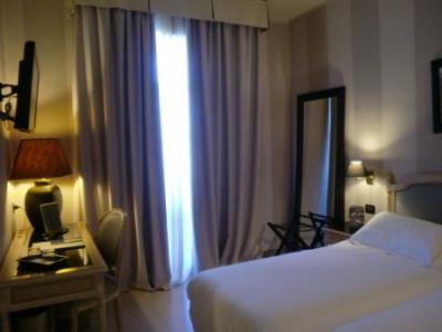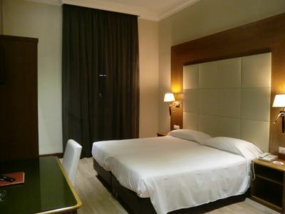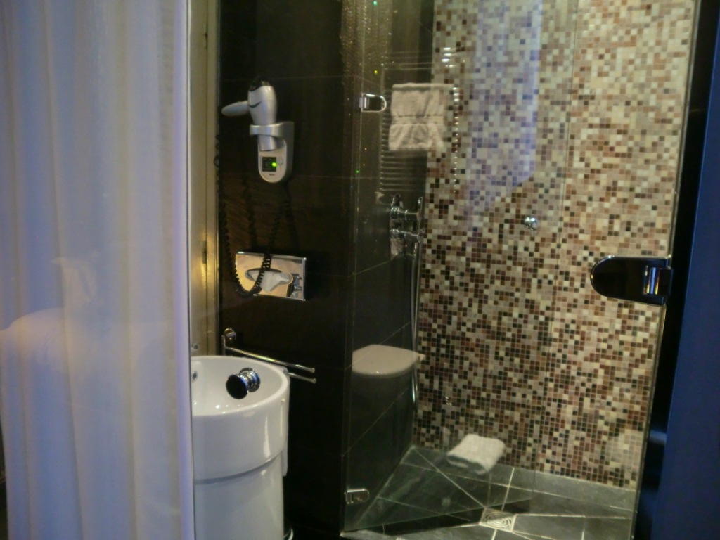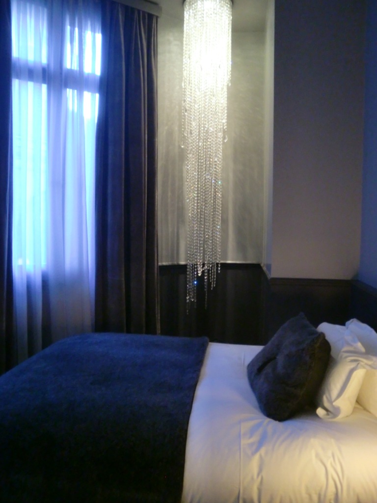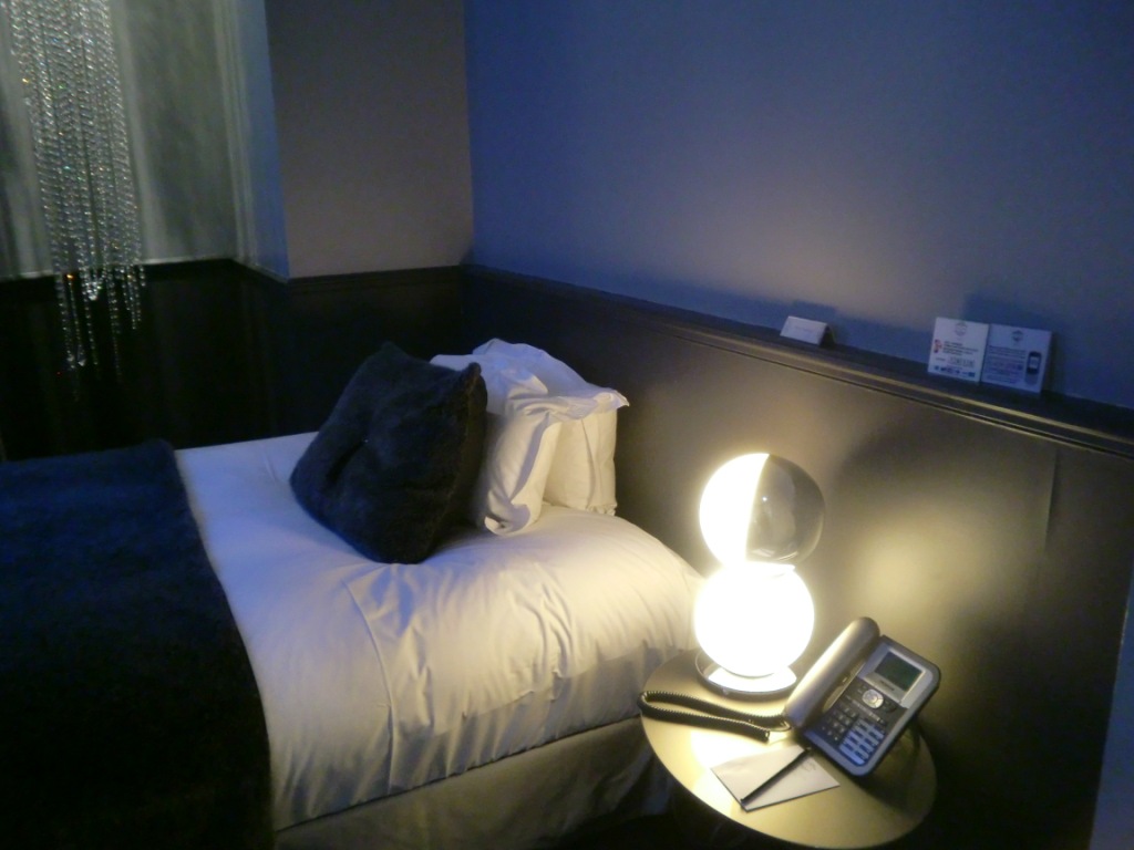 デザイナーズホテルということでしたが、部屋はモダンというよりかわいらしい雰囲気でした。部屋が狭いのはヨーロッパでは仕方がないことだと思いますが、ドアを開けるとすぐベッドがあるのは、部屋にいる間少し落ち着きませんでした。