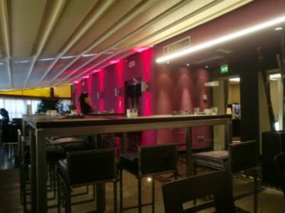 屋内のバールスペース、着席スペースの他、目の前の共和国広場にテラススペース(屋根あり、暑さ対策のミスト噴射あり)を広く設けていました。