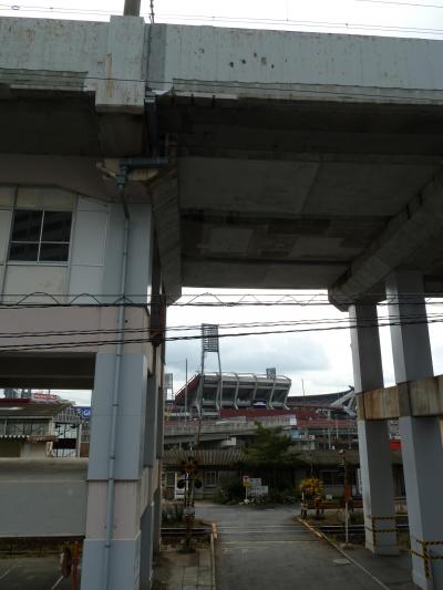 新幹線の高架の向こうには、マツダスタジアムが見えます。