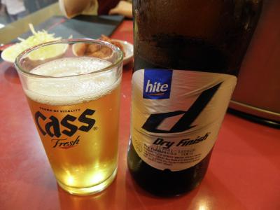 ひとりで中瓶飲み干しました。いやー 酔っ払った!明洞でかかっている音楽...