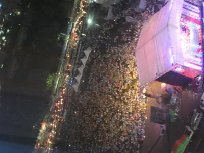 ホテルの向かいの広場では、なんらかの集会で雨の中、すごい人、人、人!わ...