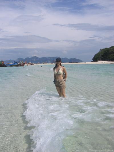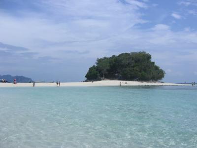 タップ島からチキン島にまで歩いてみました。裸足だから小石の上を歩くとき...