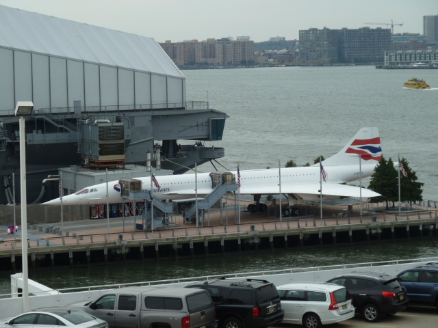 クルーズ船は埠頭の両側につけられるようになっていますが、今回は自由の女神側でしたので、遠くに自由の女神を見ることができました。また隣の埠頭は航空母艦を改造した航空博物館が設置してあり、甲板には新旧の戦闘機が所せましと展示してあり、見物客がそばに寄ってみていました。また埠頭の先にはコンコルドが置いてありました。