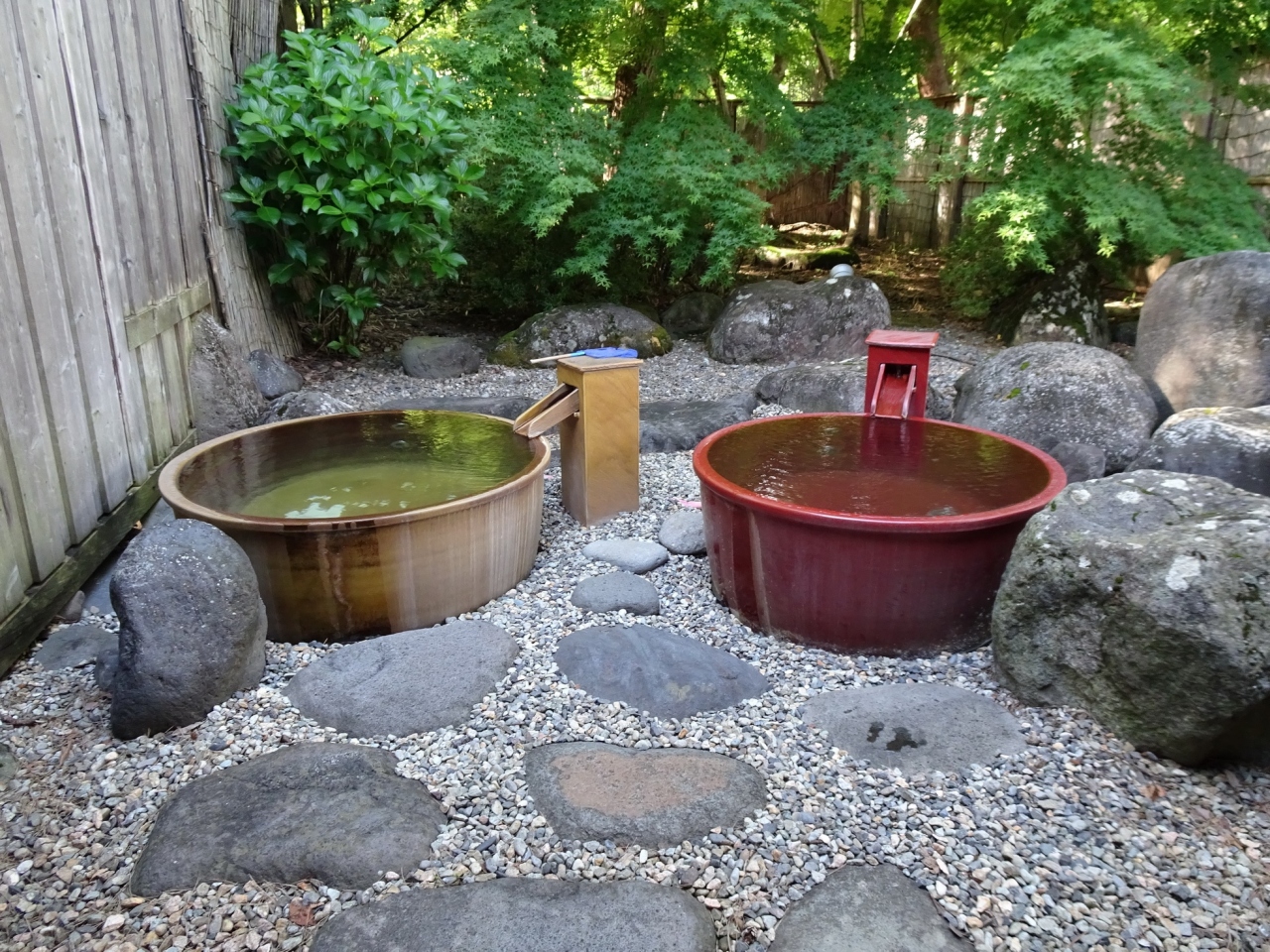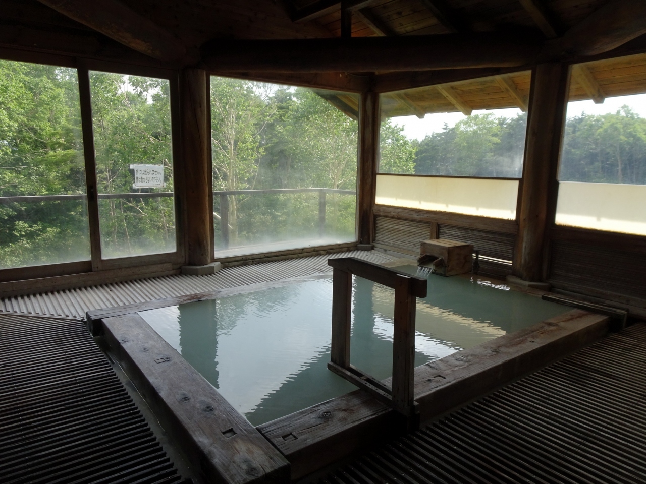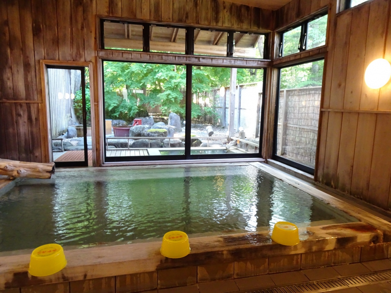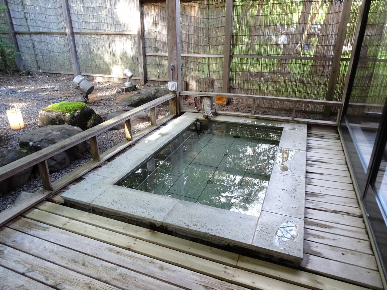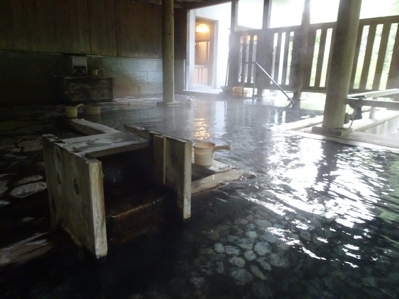 お風呂は露天風呂と2種類の内湯があります。やや青みがかった白濁硫黄泉です。特に露天風呂はとても素晴らしい雰囲気。