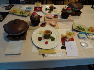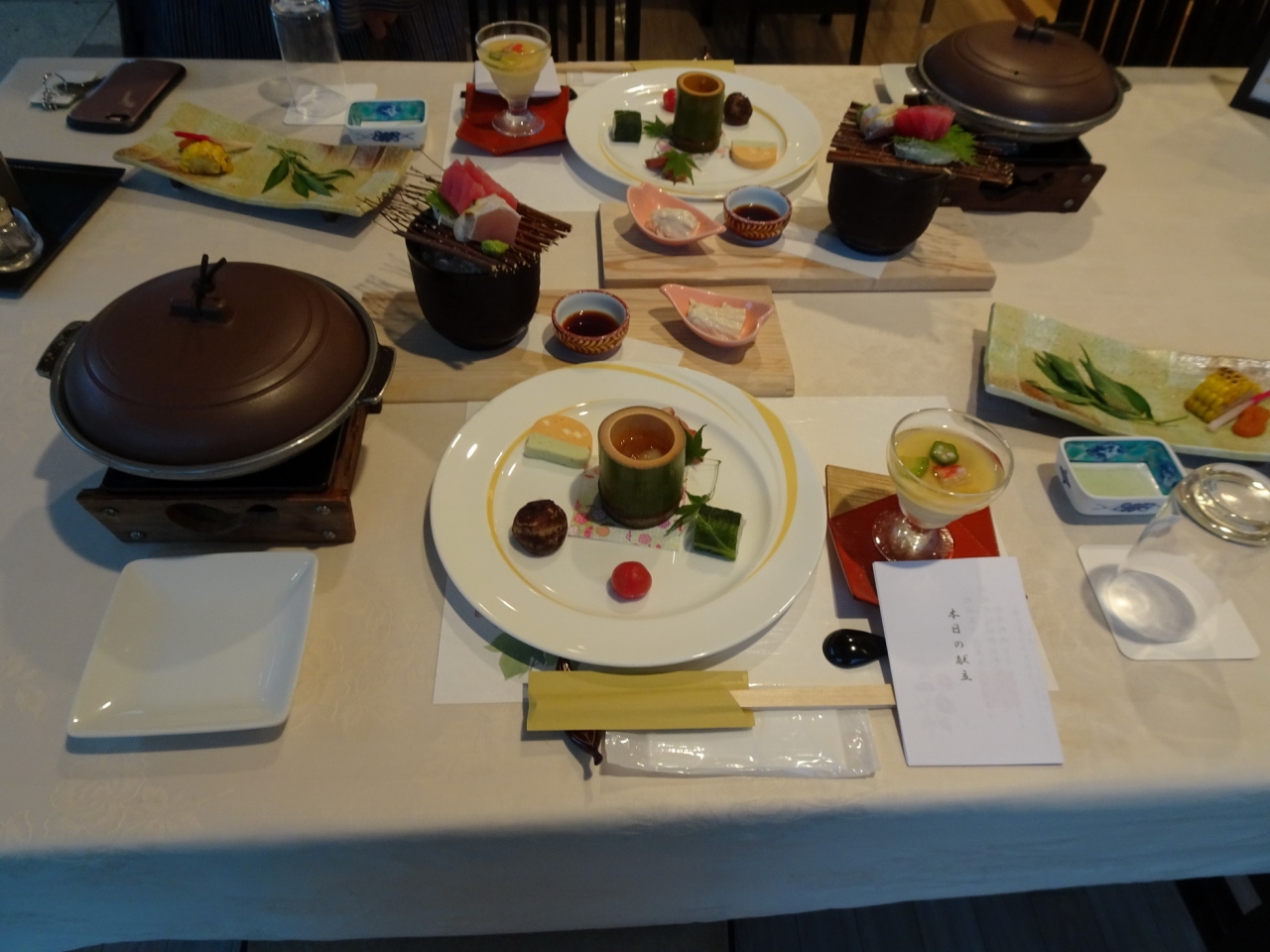 食事はレストランでいただくことになります。会席料理出温かい物は温かくという心遣いもできています。自分の時はトレイニーが一生懸命料理の説明をしてくれたのですが、横で先輩が優しく見守っているのが微笑ましかった。