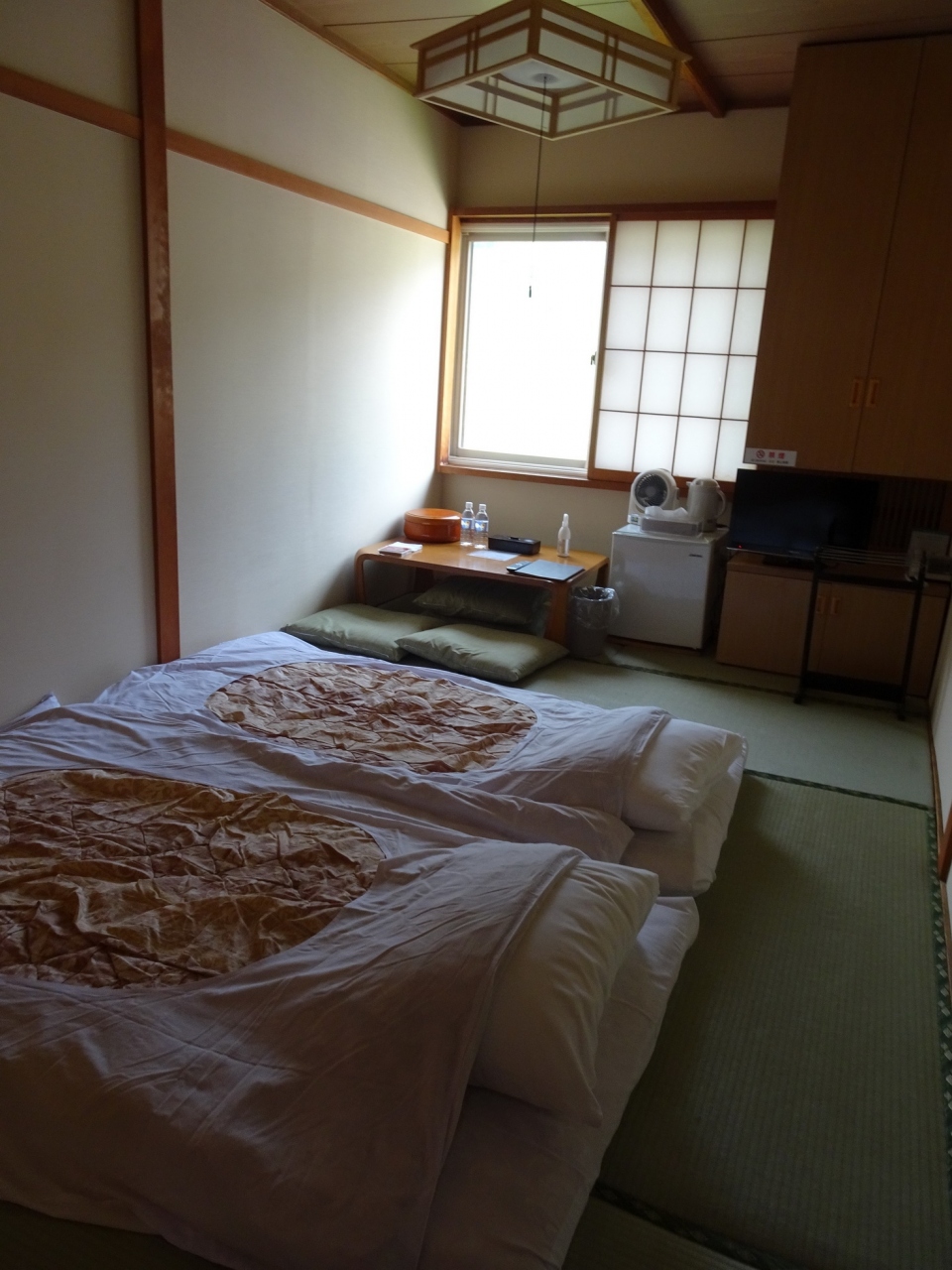 ふかふかの布団、バリバリに糊付けされた浴衣、バスタオルや手ぬぐい、歯磨き類も用意されています。