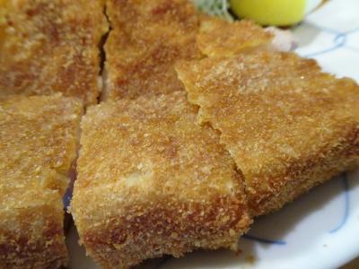 一般的なとんかつやフライのころもよりパン粉が細かく、食べたときの食感が優しい感じ。これならば衣で口の中を切る事もありません。