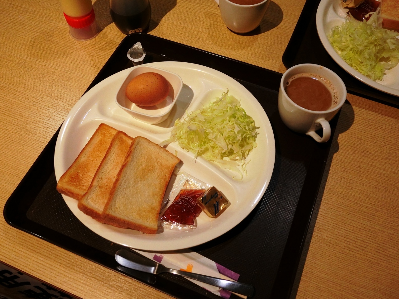 喫茶店のモーニングのような朝食ですが、宿泊料金からみて贅沢なことは言えません。
