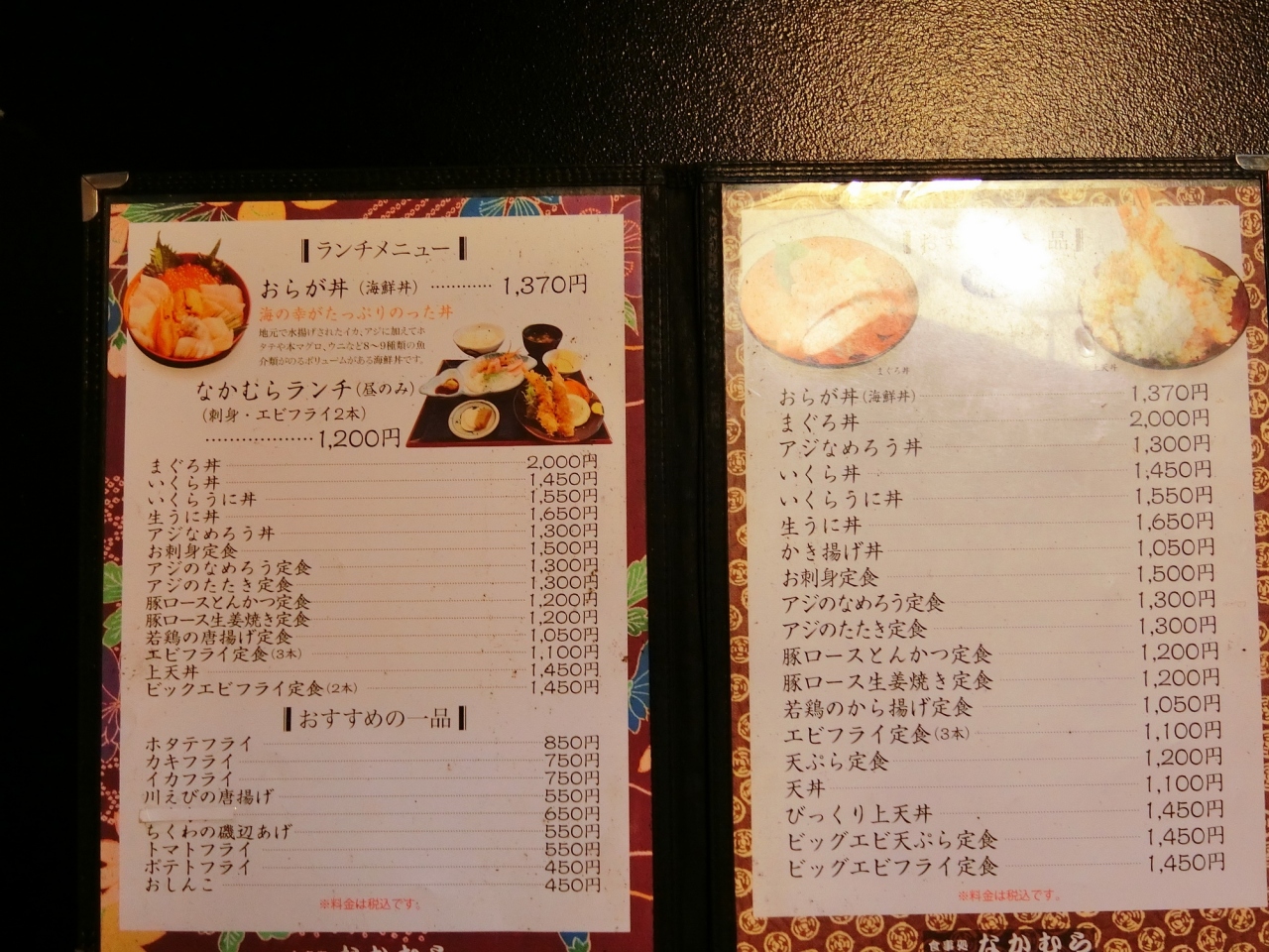 ランチはコスパの良いおらが丼と呼ぶ海鮮丼かランチタイムのみのなかむらランチを注文する人が多いようです。