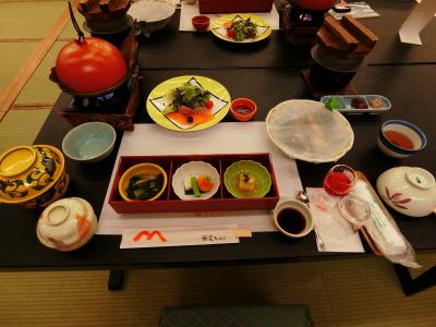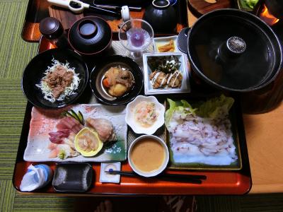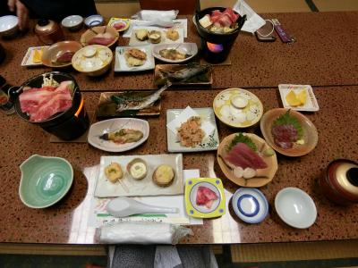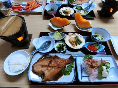 夕食の懐石・朝食バイキングとともに品数も多く、いずれも地元産の素材を生かした料理となっていました。
