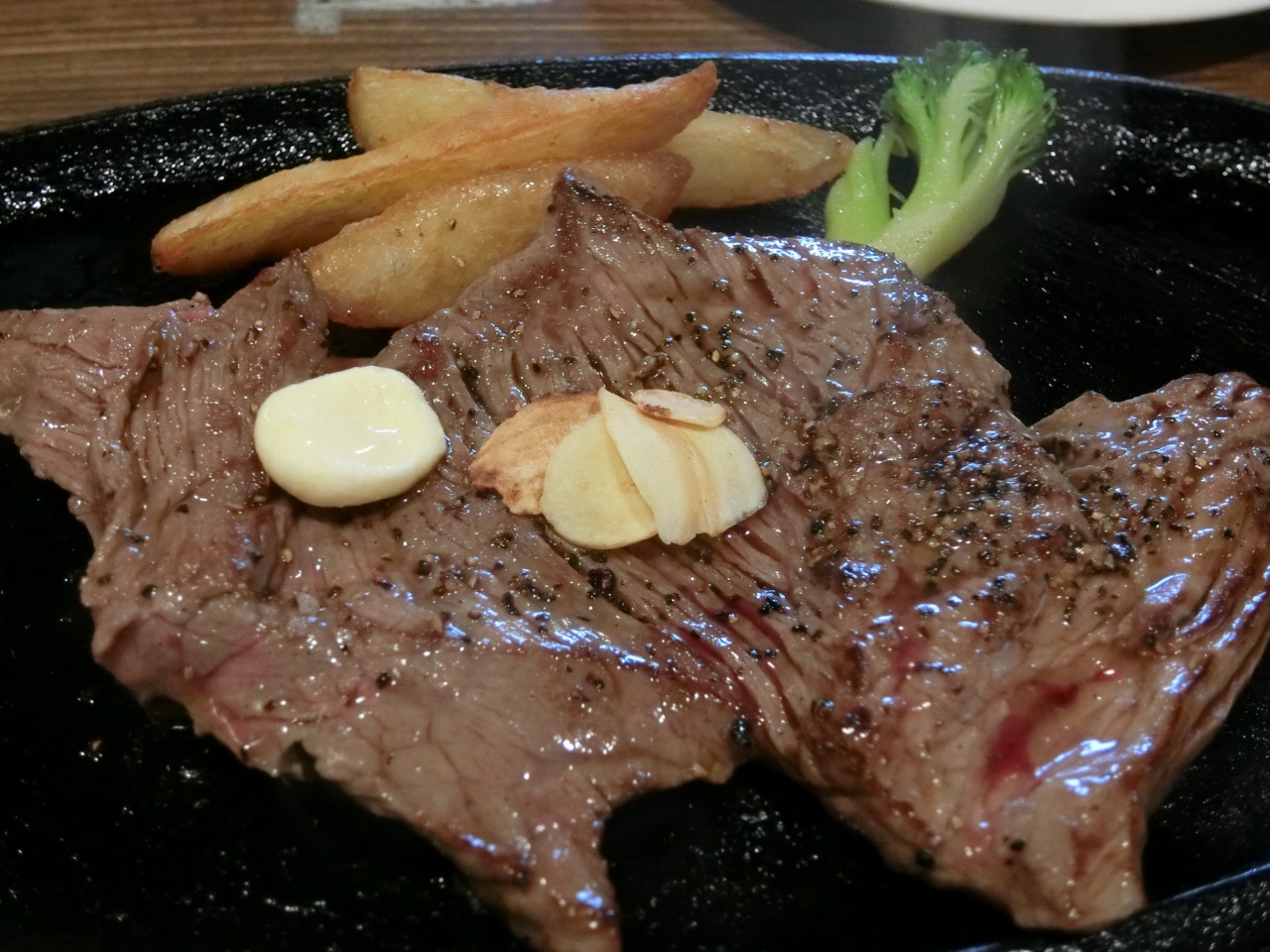1000円でステーキが食べられ、ライス、サラダ、スープ、ドリンクがお代わり自由。