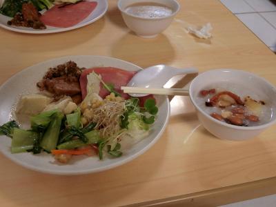 ビジネスホテルといった感じだが、バイキング形式の朝食が付く。