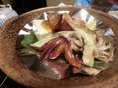 夕食は敢えて少なめの部屋食を選んでいます。若い人には量は少なく感じるかもしれませんが、私たちには十分。
