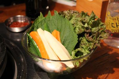 焼いたお肉を野菜に巻いて食べるとおいしくて、