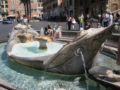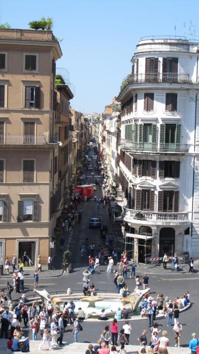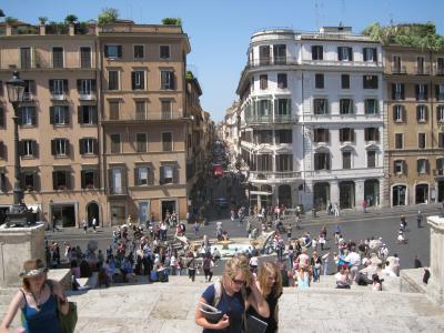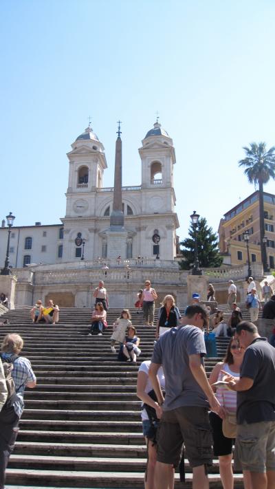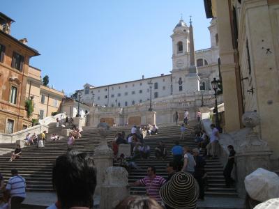 階段下の舟の噴水近くと、スペイン階段にはたくさんの人がいました。