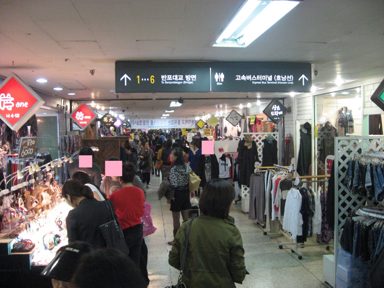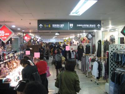 地下街はアクセサリーにカバン、靴、服などのお店が密集しています。