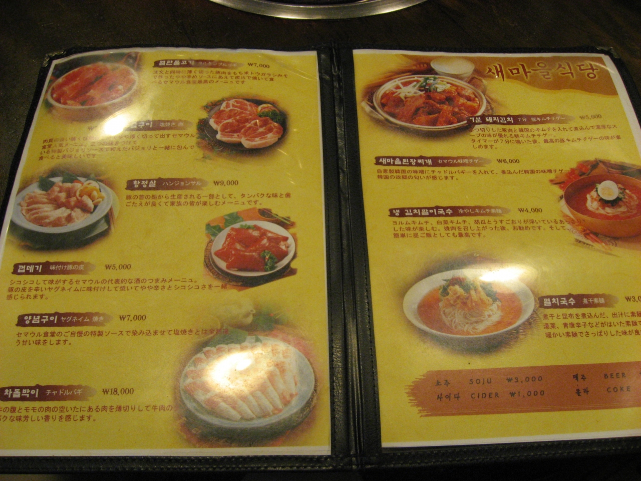 店内は韓国人ばかりでしたが、日本語のメニューもありました。