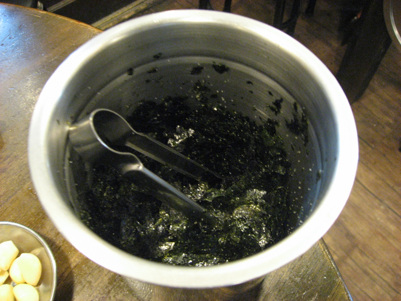 韓国のりが置いてあったので、ごはんの上にあっつあつのプルコギをのせて