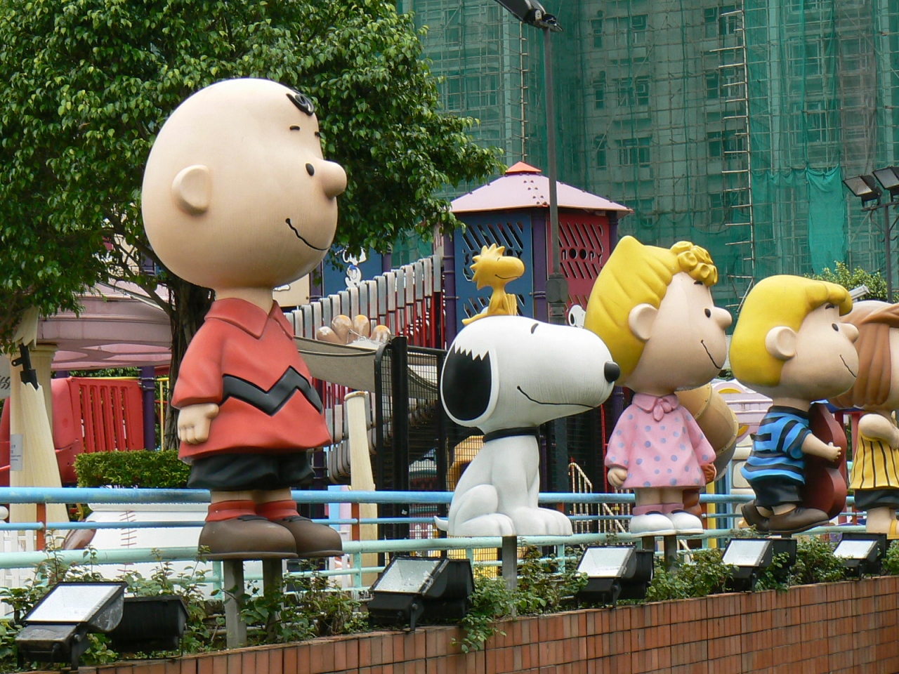 無料の公園でスヌーピーや仲間たちの像がたくさんあります。お買い上げいくらでのライドも一つありますが、行ったときは稼動していませんでした。