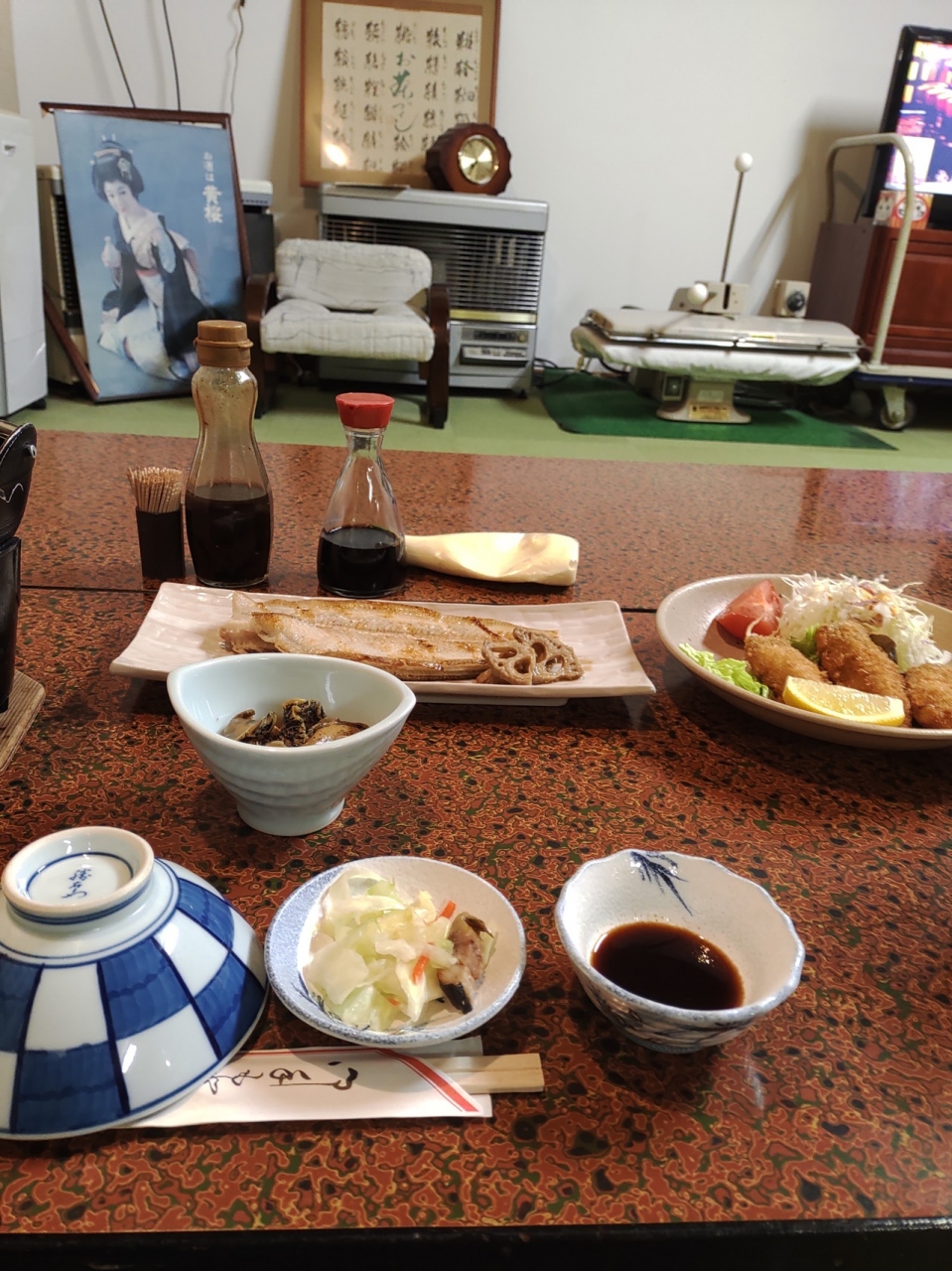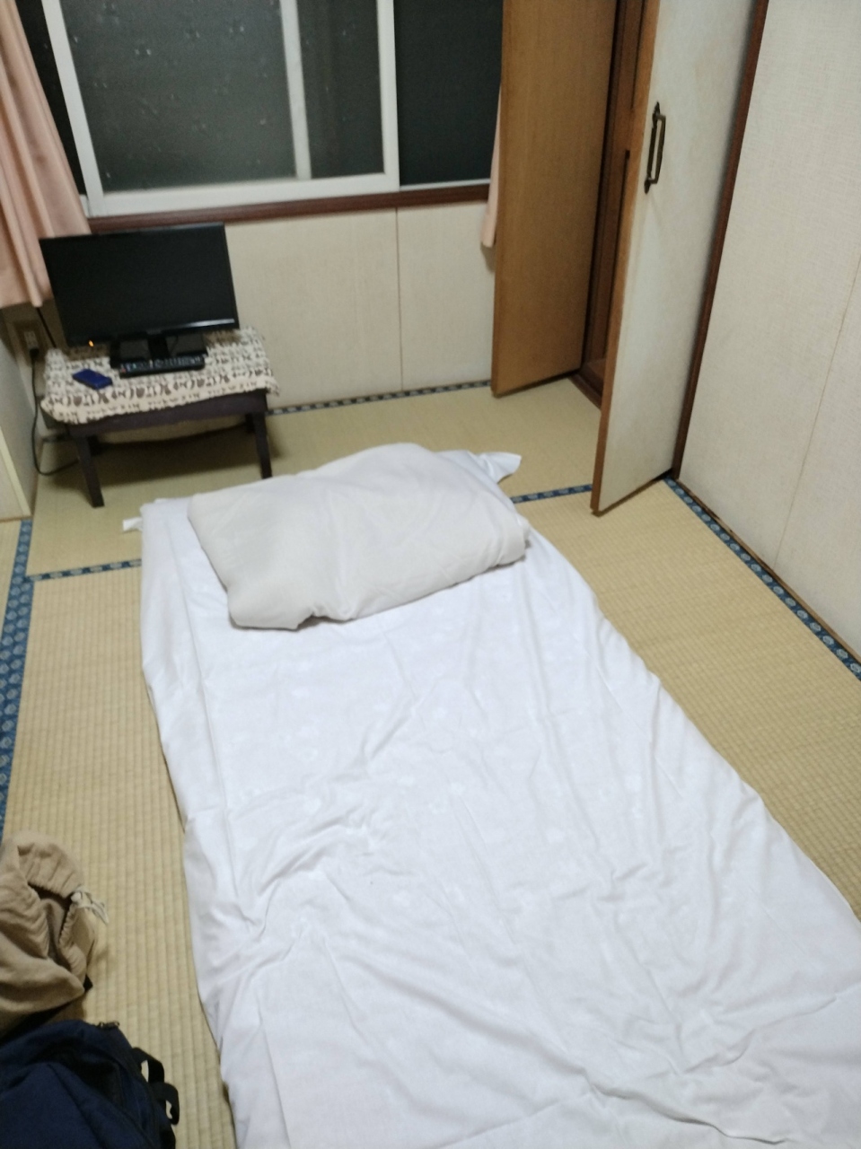 宿は民宿という感じである。バス、トイレは共用。入浴は朝まで可。徒歩圏内にはドラッグストア、スーパー等あり。買い出しには困らない。清潔感はまあまあといったところだろうか。昭和の雰囲気な宿である。