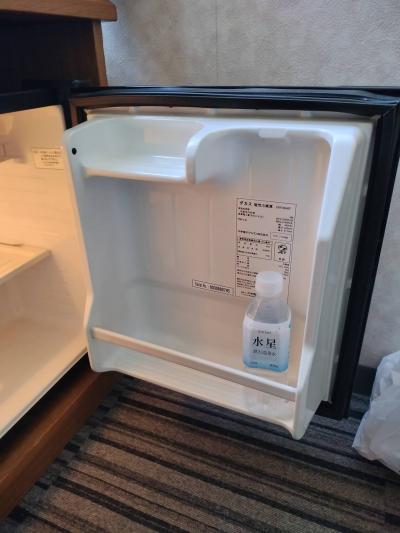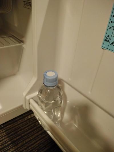 ウエルカムサービスのデザートとお水が冷蔵庫にセットされています。大浴場は夜通し入浴可。サウナは0時~5時は休止。