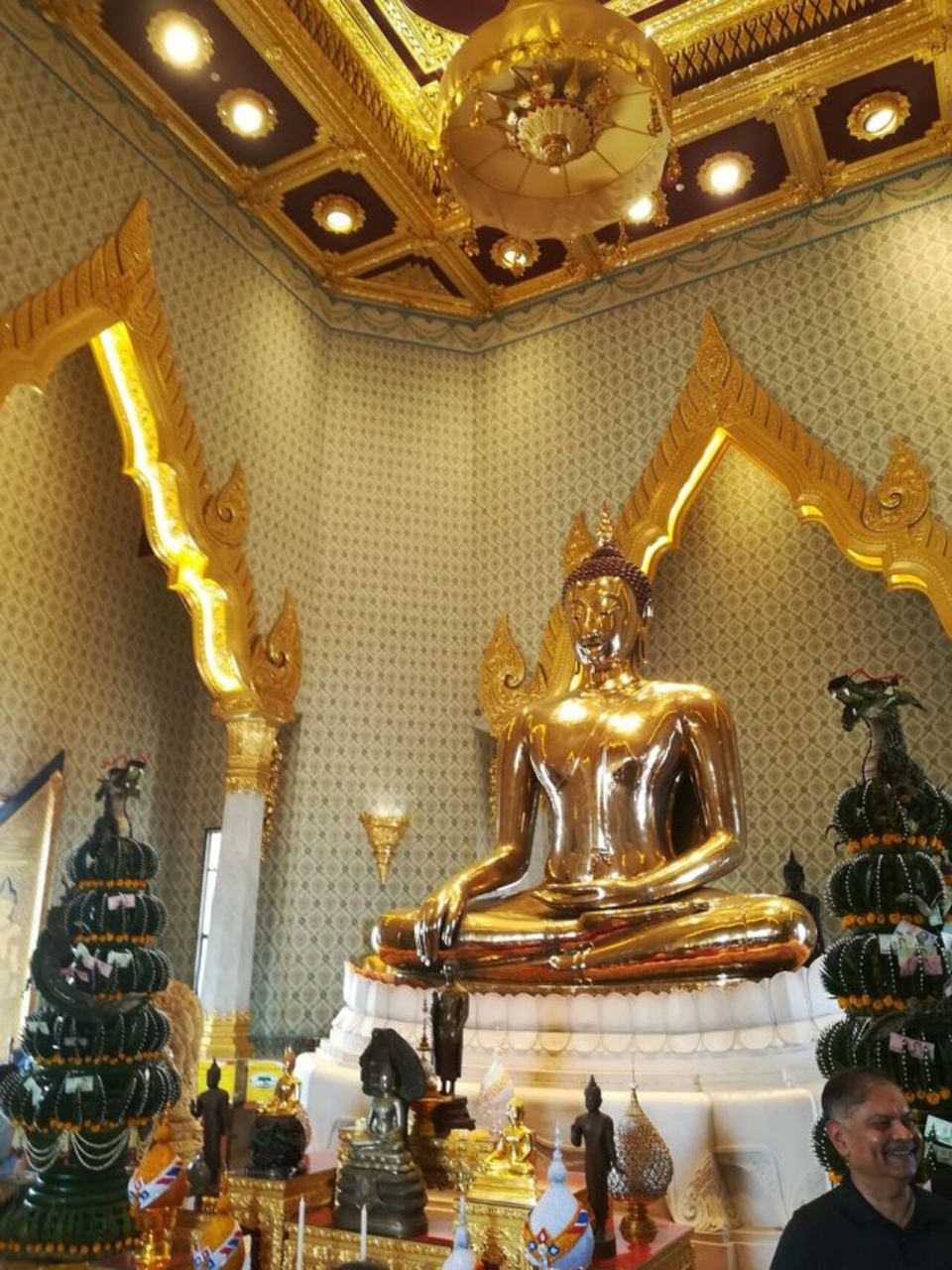 この寺院には約700年前に造られたといわれる仏像があり。全重量5.5トンの金で鋳造されているこの座像は、以前は漆喰で覆われていた。1953年、安置されていた廃寺ワット・プラヤーグライの取り壊しにともなう工事の最中に落下して漆喰が割れ、中から黄金の仏像が現れたのです。境内ではお土産を購入することもできます。ラッキーペンたるものを購入しました。