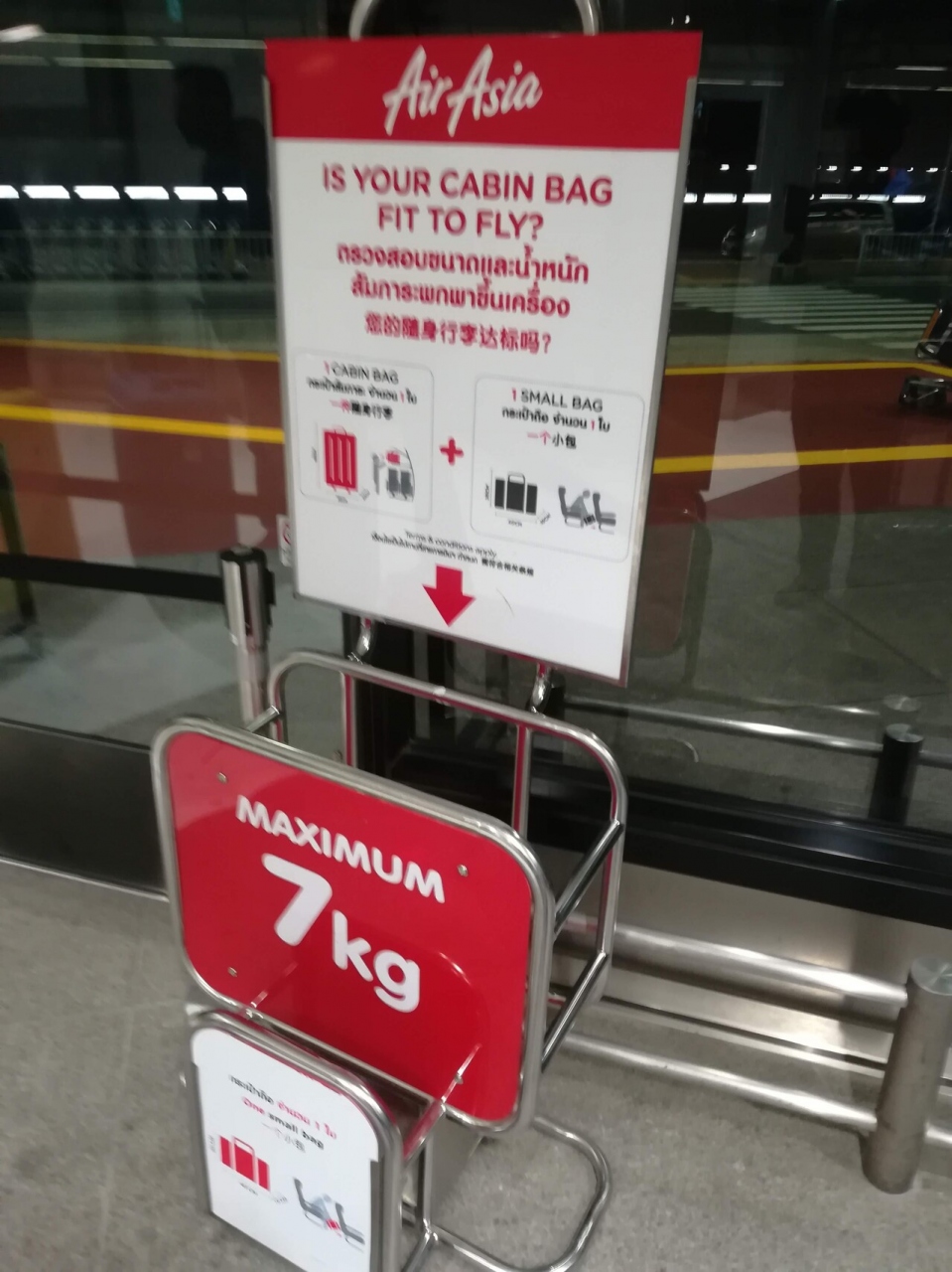 機内持ち込み手荷物について7㎏まで無料。7.9㎏ぐらいまでだと経験上許してくれる感じですが、それ以上だと超過料金を取る勢いです。カウンターで厳しく計量あり。