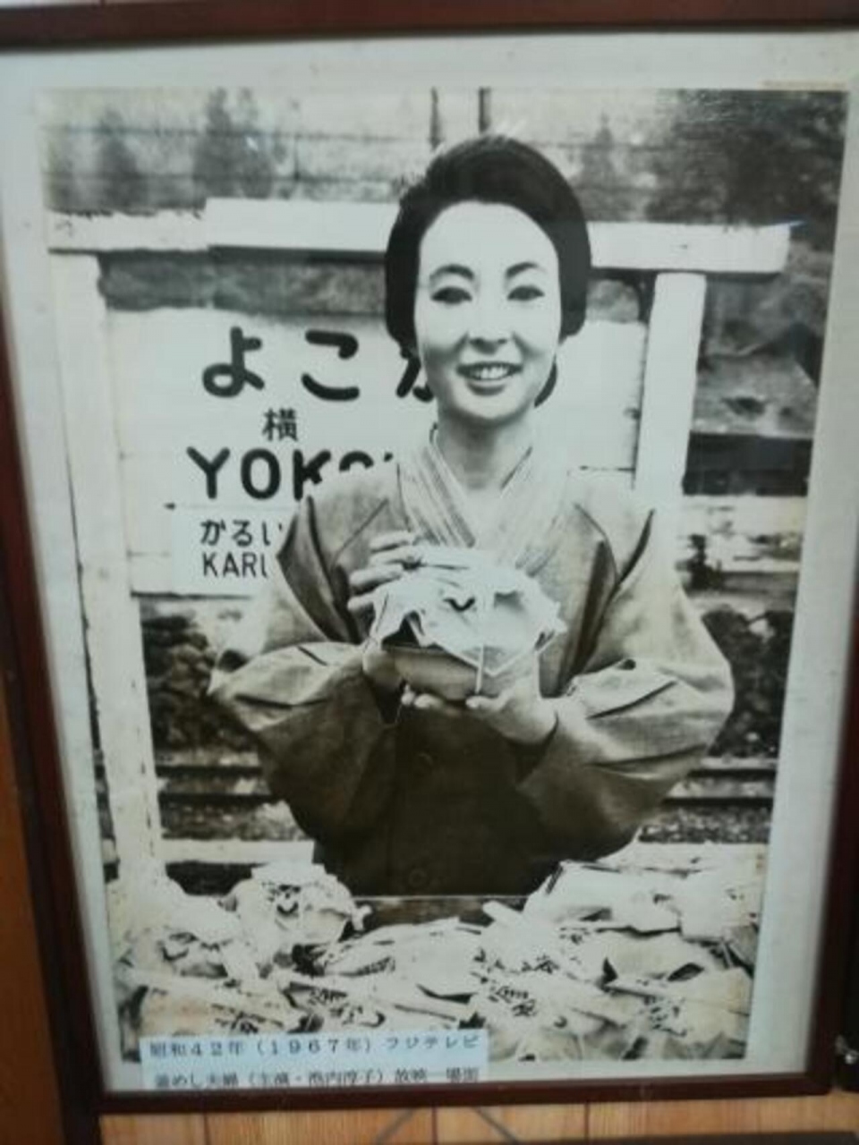 横川駅前にはおぎのや資料館があり釜めしの歴史をみることができます。釜めしの他にも鉄道の備品などの展示もあり。横川駅の歴史を知ることも出来ます。横川の釜めしが全国的に有名になったのは『釜めし夫婦』という池内淳子主演のドラマが放映されたのがきっかけだったそうです。その展示や池内淳子直筆サインなども展示されています。