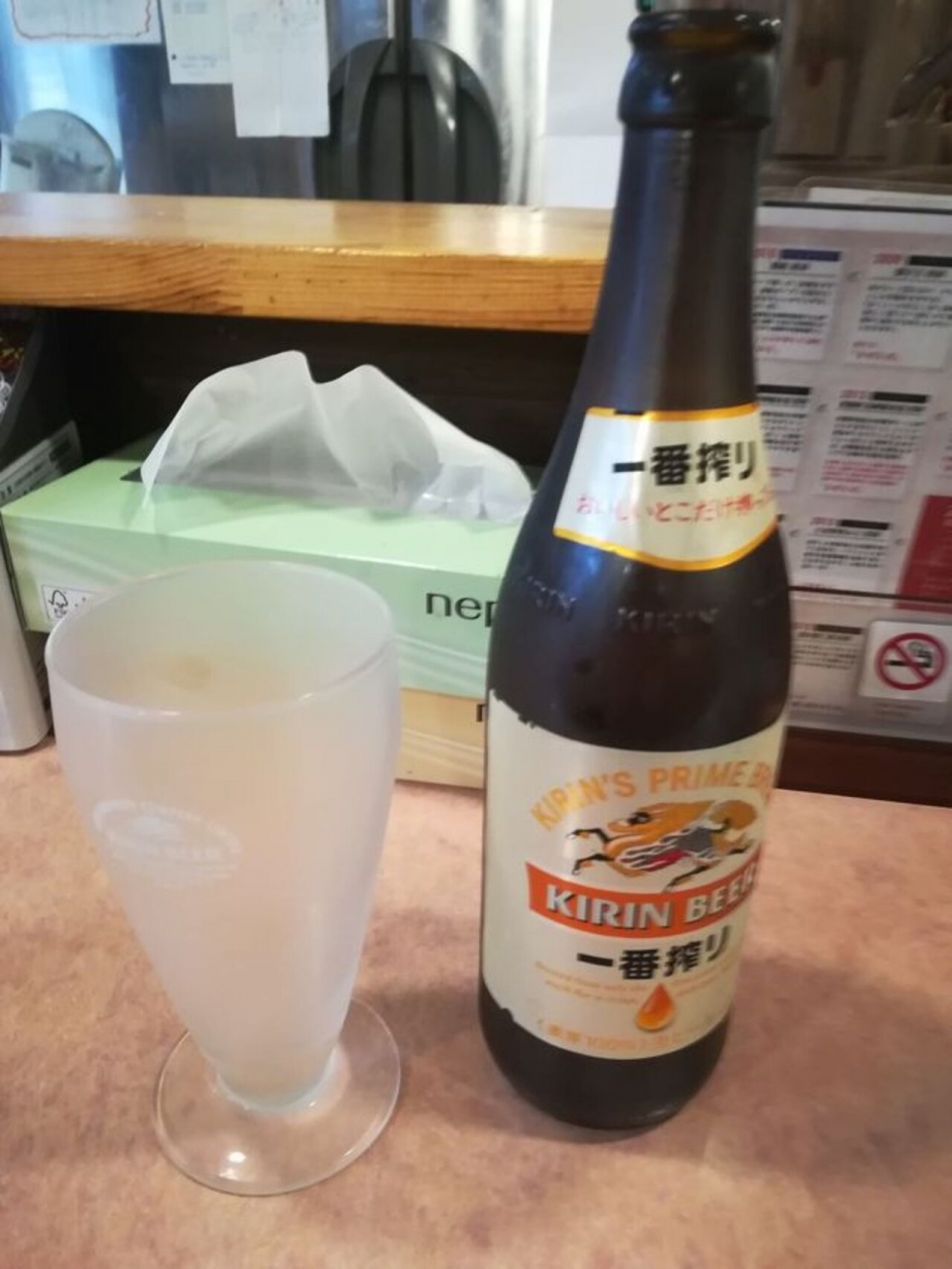 ちょっとバスを乗るのに時間があったので入店。ビールを頼みました。24時間営業ですのでどの時間でもふらっと入ってビールが飲めるのは嬉しいところです。ちなみにここの店舗には「小ジョッキ150円」というメニューがあったのでそれを口頭で注文したのですが、店員さんは外国の方だったらしく瓶ビールを持ってきてしまったのでまあいいかということでそのまま瓶ビールを飲みました。500円もしなかったし。朝定食が290円からありお得でした。