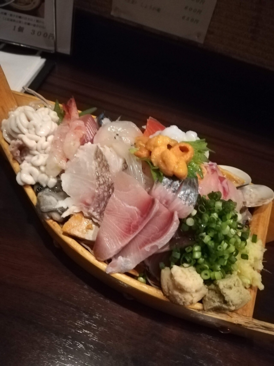ここはまずお通しに必ず大舟盛とカニが付きますが大舟盛のボリュームは凄いです。これだけでお腹一杯になってしまうことも。このお店の名物です。とにかく刺身を食べまくりたいという時にはお薦めの居酒屋であります。