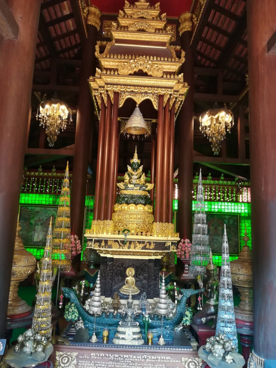 バンコクにも同じ名前の寺院がありますが、バンコクのワットプラケオに安置されているエメラルド仏は元々はこのチェンライの寺院に安置されていた物だそうです。なのでこちらが元祖エメラルド寺院です。寺院内は眩いエメラルドグリーンの輝きが放たれています。バンコクに比べて人も少なくのんびり見ることが出来ると思います。入場料は無料です。