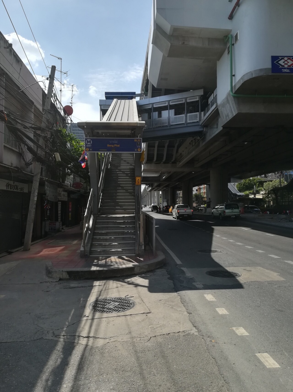 ワットパクナムへ徒歩で行く際の下車駅です。距離的に1キロちょっとでしょうか。グーグルマップを使用して行くとわかりやすいと思います。途中商店や学校などバンコクの下町の風景を見ることが出来る行き方だと思います。