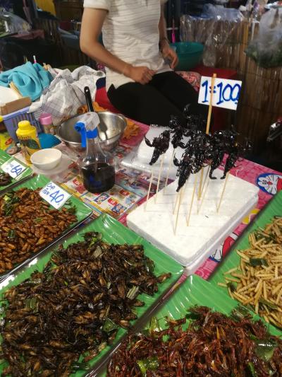 ここの市場のB級グルメもオススメ、ワニ、サソリなどのゲテモノ類からシーフードまで色々あり。見てるだけでも楽しいと思います。連日観光客でごった返してます。お客さんが多いだけにスリ等もいるみたいなので注意が必要です。バッグなどは前に抱える、財布などを後ろポケットに入れないなど対策はした方がいいと思います。本当混んでますので。