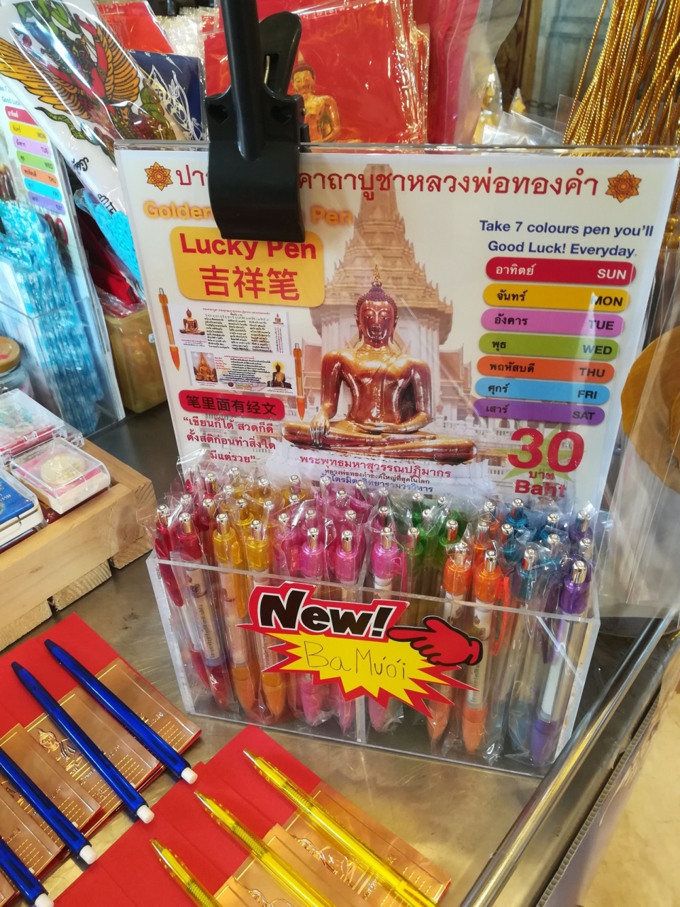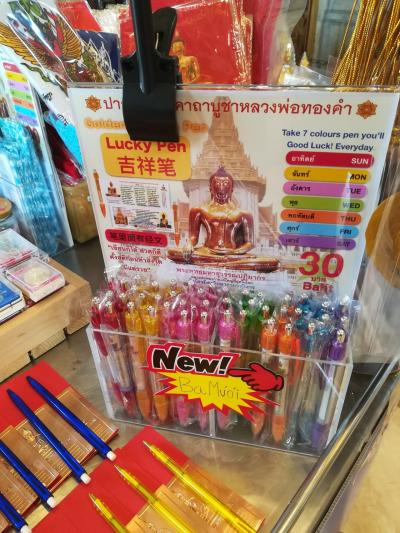 2019年12月と2020年1月に参拝いたしました。金で出来た仏像です。多くの参拝者が来ていました。この境内で売っていたラッキーペンたるペンを購入しました。タイでは自分の生まれた日にちにそれぞれカラーがあるということでその色を大切にするとのことでした。