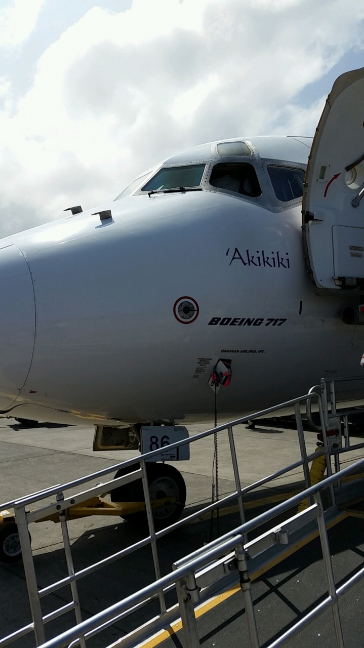 ホノルルからハワイ島への移動で使用しました。1時間もかからないフライトなのでしたが、窓からの景色が最高に綺麗でした。飲み物のみ出ましたが、その他設備やサービスは期待しないほうがいいです(50分くらいなのであっという間に到着します)。初めて知ったのですが、ハワイアン航空機にはそれぞれ名前がつけられていて機体に書いてあるそうです。