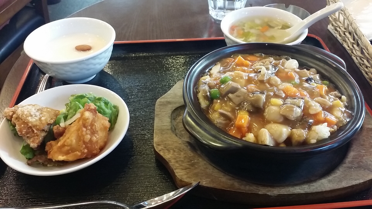 餃子がうまいという評判だったので、ランチセットで頼んでみた。店内は混んでいて少し待たされたが、すぐに案内してくれたものの、メニューは出さない、醤油・酢などの一式も持ってこない、注文も聞きに来ない、食べ終わって一息ついていたらさっさと出て行けと言わんばかりに何も聞かずに皿を下げる・・・まー、よくある中国人ウエイターの中華料理屋さんな感じでした。ただ、餃子は美味しかった。皮がもちもちで、食べごたえはありましたね。