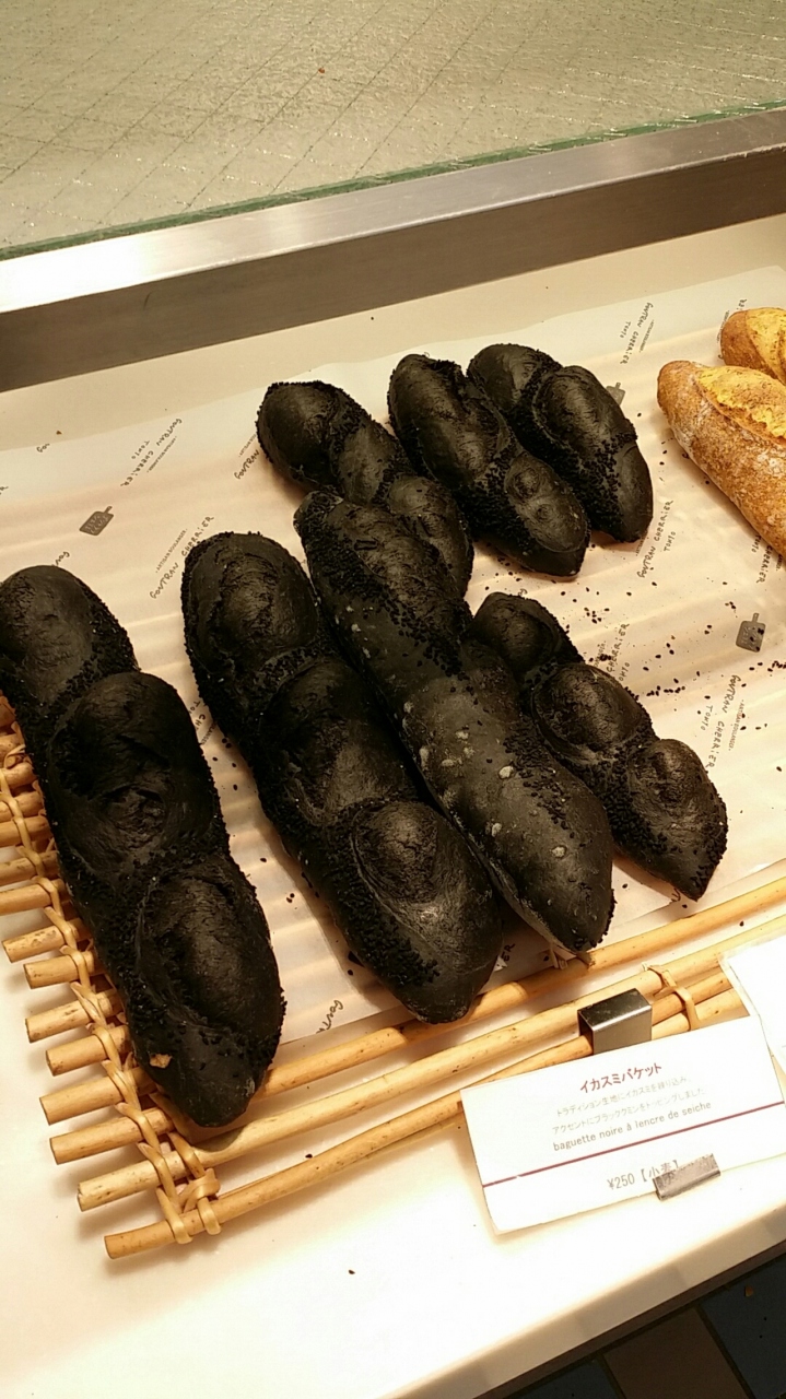 新宿サザンテラスに新しくパン屋さんができていたので入ってみると、真っ黒なバゲットがあった。「いかすみバゲット」。恐る恐るお土産に買って帰ったが、なんでしょう、独特なスパイスがきいていて、いかすみの風味というよりクミンのスパイスが強かったですね。もう一回買うかと言われると・・・。ただ、この店のクロワッサンはおいしそうでした!今度はそっちかな。
