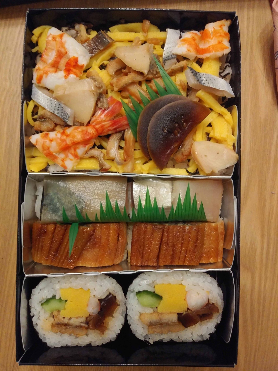 中で飲食したわけでなくテイクアウトのお弁当ですが。ちらしと押し寿司二種、太巻きが入っていて5000円弱ぐらいでした。一人分には少し多くて二人分だと足りない微妙な量。太巻きがすごく美味しかったので次回は太巻きだけの単品でいいかなと思いました。