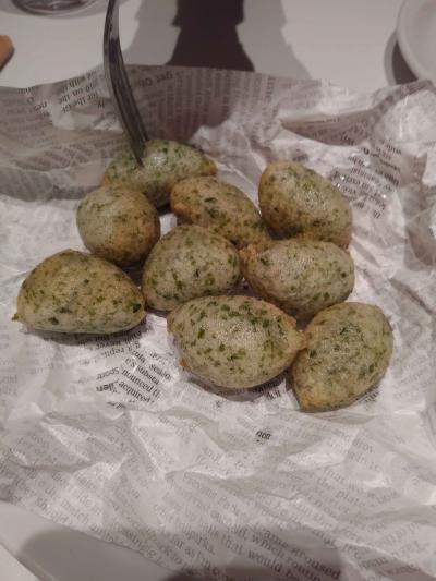 注文は最近よくあるQRコードを読み込んで注文するスタイル。牡蠣のセットとパスタ、一人一種類は多いのでパスタをシェアしてちょっと足りないのでゼッポリーニを追加しましたが全部美味しかったです。ただ牡蠣にお肉乗せるのはやめてほしい。- 旅行時期