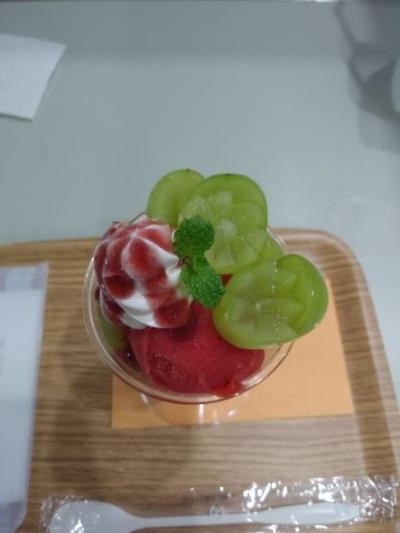 催事で来てたのでシャインマスカットパフェをいただきました。こちらがすごく美味しいシャインマスカットがごろごろ入っていて、クリームも美味しいしすごく満足感ありました。提供までに時間かかったので最初オペレーションよくないなぁって思ったのですが、出てきたのを見るとすごく丁寧に作ってくれたんだってわかって納得しました。