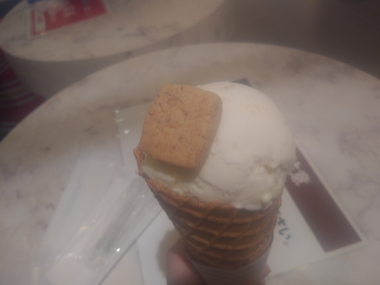 同じフロアにあるピエールマルコリーニのソフトクリームを食べに行ったけれど機械の故障でお休みしてたのでこちらのジェラートにしました。ゆっくり丁寧に作ってくれてきれいなんですけど時間がない人にはおすすめしないかも。
