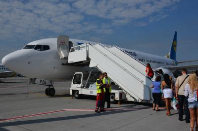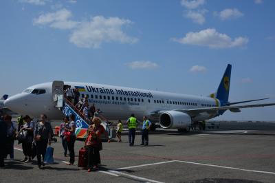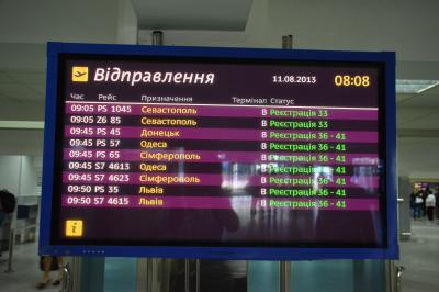 ウクライナ語です。ウクライナ航空でシンフェローポリ空港へ行きます。ヤル...