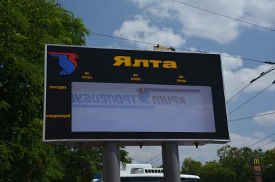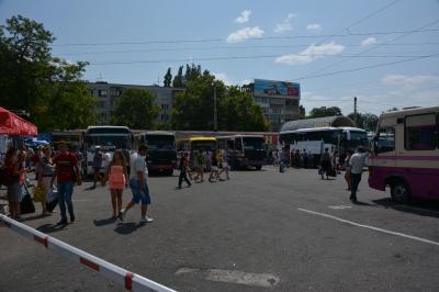 シンフェローポリ駅近くのバスターミナルでヤルタ行きの停車場を見つけたら...