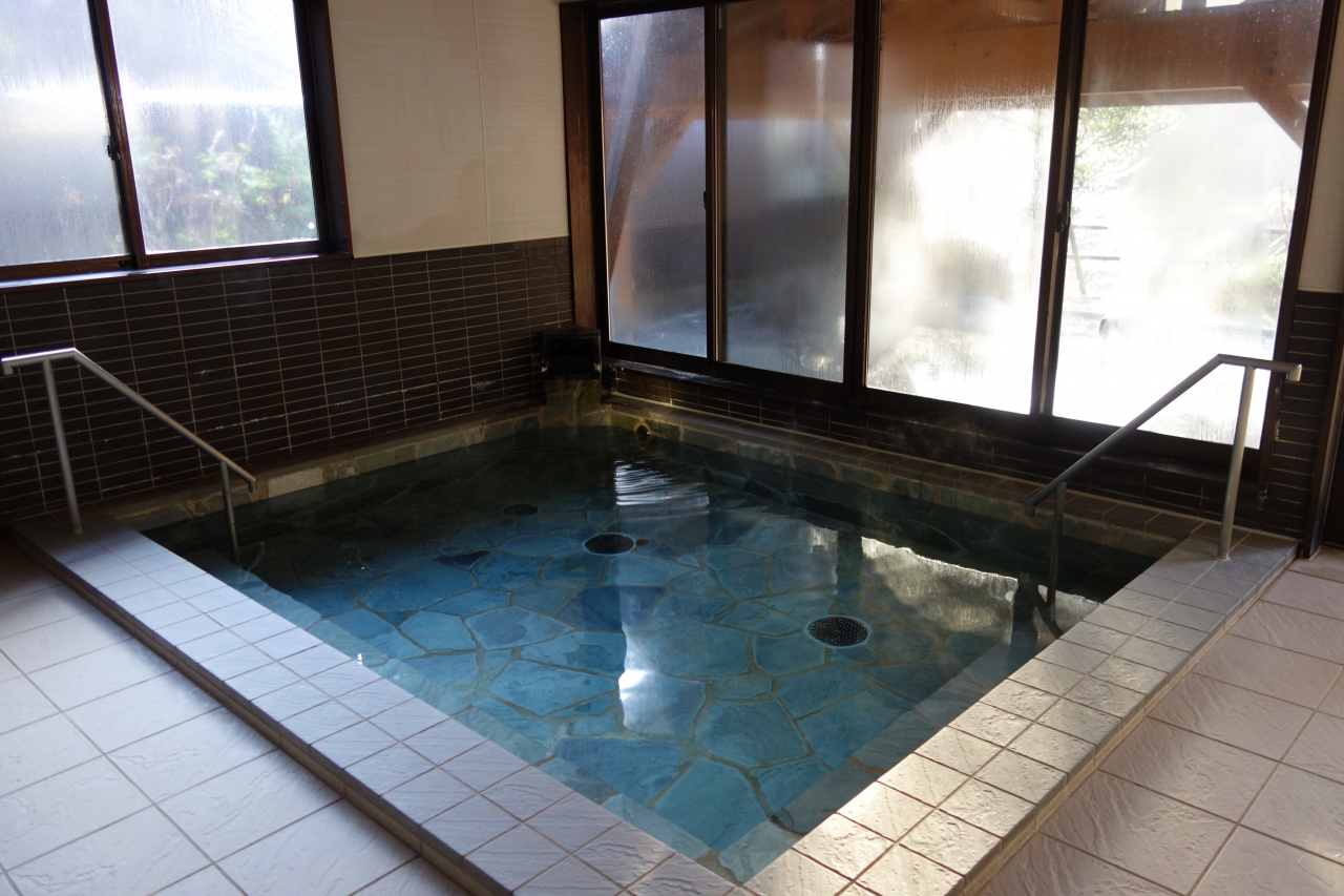 温泉は、長い廊下を進んだ離れのような場所にあり、内湯と露天風呂があります。