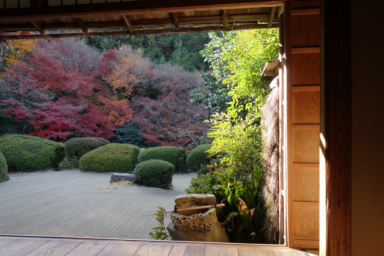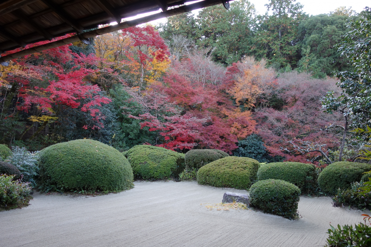 床モミジだけではなく、池泉庭園や枯山水庭園の紅葉も見事です。- 旅行時期